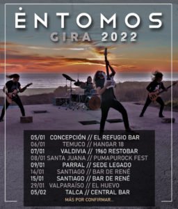 Compuestos por Pablo Nadinic (voz/guitarra), Franco Mitchell (batería), Oscar Romero (bajo) y Danny Barrera (guitarra), Éntomos se prepara para una nueva gira por el país que hasta el momento incluye Santiago, Valparaíso, Parral, Santa Juana, Talca, Valdivia, Temuco y Concepción.
