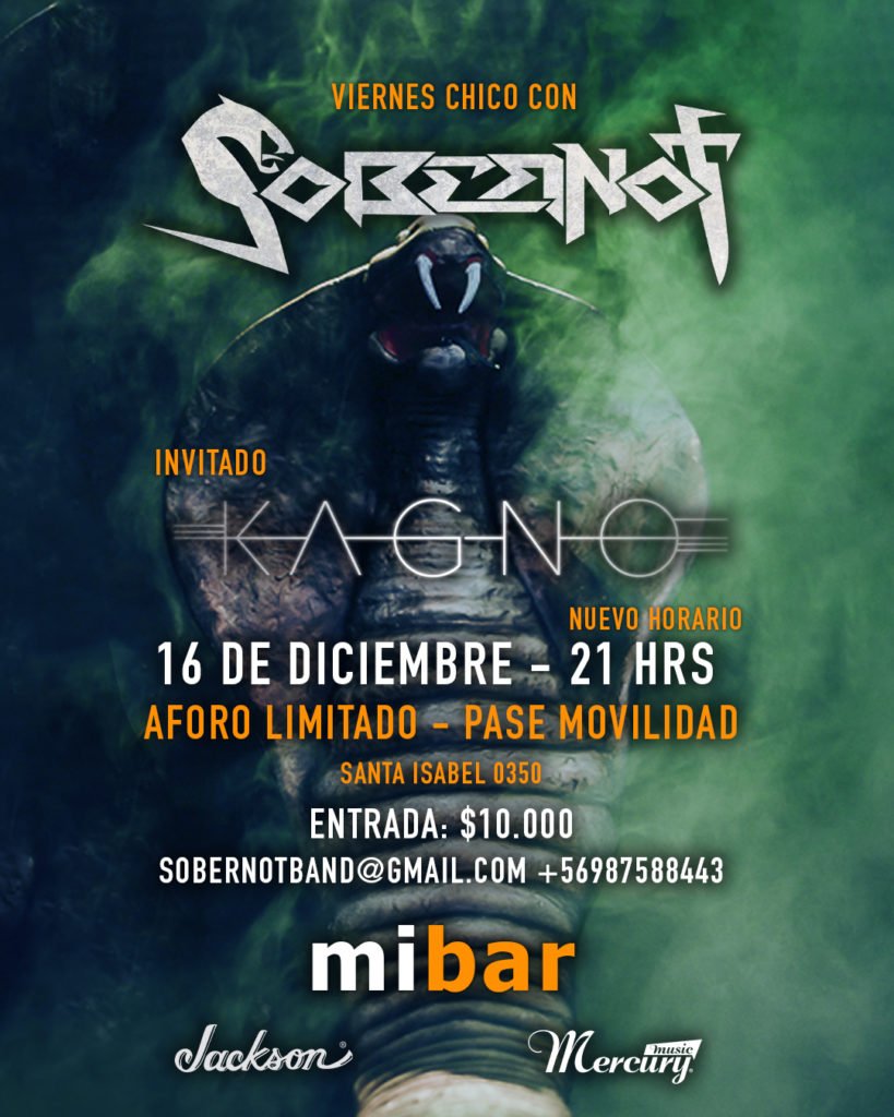 Sobernot, la banda chilena independiente de groove metal, cerrará el año con un show extendido y lleno de sorpresas en el tradicional local de Avenida Santa Isabel, preparando en su set canciones pertenecientes a su EP debut “Aurt” (2018), y el galardonado LP “Silent Conspiracy” (2018).
