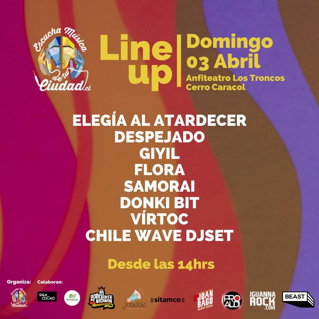 “Escucha Música De Tu Ciudad” es una campaña que incentiva a escuchar, valorar y compartir el trabajo musical creativo del lugar en que se vive, además de generar comunidad entre los actores de la escena del territorio. Es por ello, que este 2022 y gracias a la administración del Parque Metropolitano Cerro Caracol, y la colaboración de más de 50 activos agentes de la escena musical de la región, se realiza la 2da versión del Festival “Escucha Música de tu Ciudad“, la que congrega a 8 proyectos musicales exponentes de Concepción.