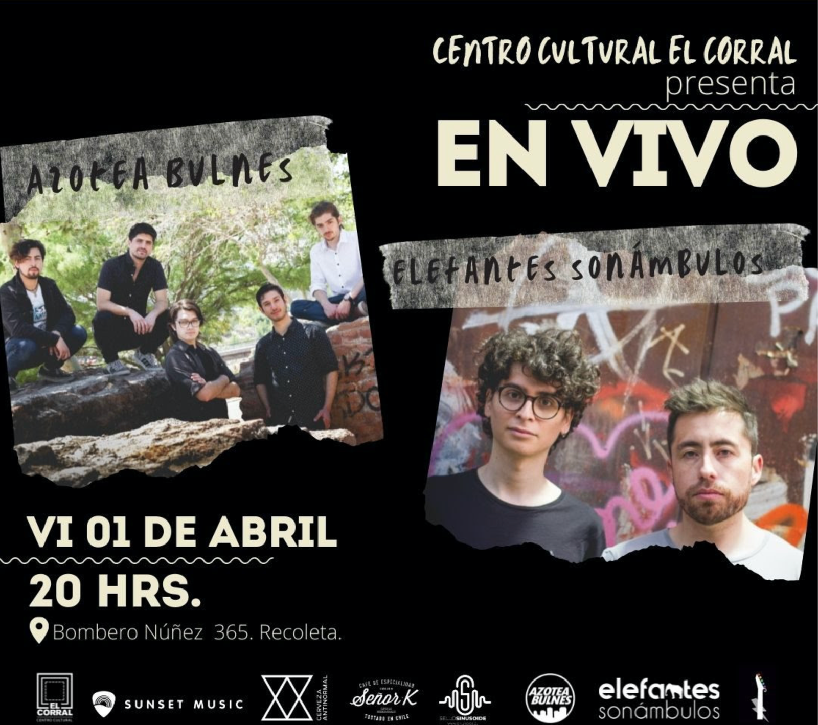 El rock alternativo de Elefantes Sonámbulos y el rock clásico de Azotea Bulnes se darán cita en un solo escenario, el Centro Cultural El Corral, este viernes 01 de abril, desde las 20 hrs.