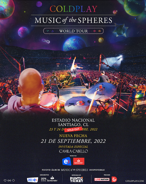 Debido a la abrumadora demanda por tickets, Coldplay ha anunciado hoy seis nuevos conciertos para su Music Of The Spheres World Tour, con fechas en septiembre en Lima, Perú y Santiago, Chile, además de espectáculos en octubre en Río de Janeiro y São Paulo, Brasil. El nuevo show en Chile se realizará el 21 de septiembre en el Estadio Nacional. La preventa exclusiva para clientes Entel y Santander comienza el lunes 11 de abril a las 11:00 horas. La venta general comienza el miércoles 13 de abril a las 11.01 a través de PuntoTicket.