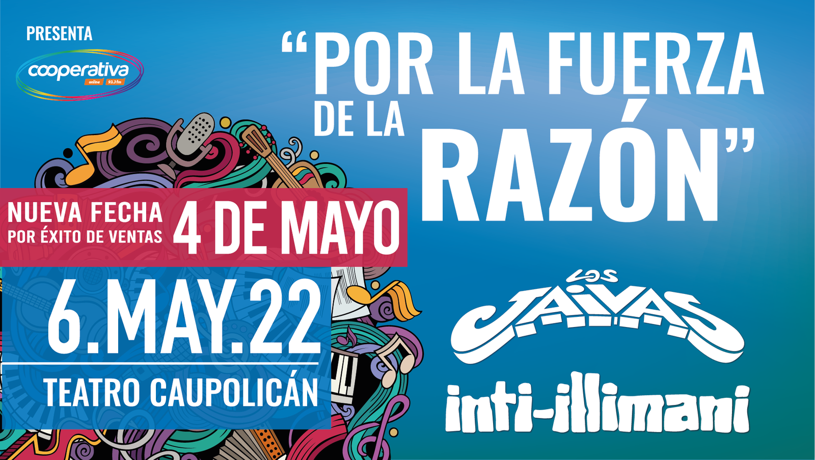 Las trascendentales agrupaciones, Los Jaivas e Inti-Illimani, abrieron una nueva fecha para su público ya éste miércoles 04 de mayo en el Teatro Caupolicán. En esta oportunidad, las bandas chilenas más representativas y de mayor éxito a nivel internacional, llevarán a cabo un concierto lleno de música y emoción, con las canciones que han marcado sus respectivas trayectorias.