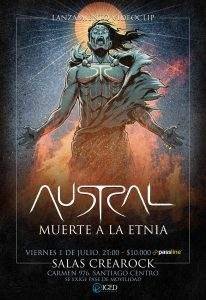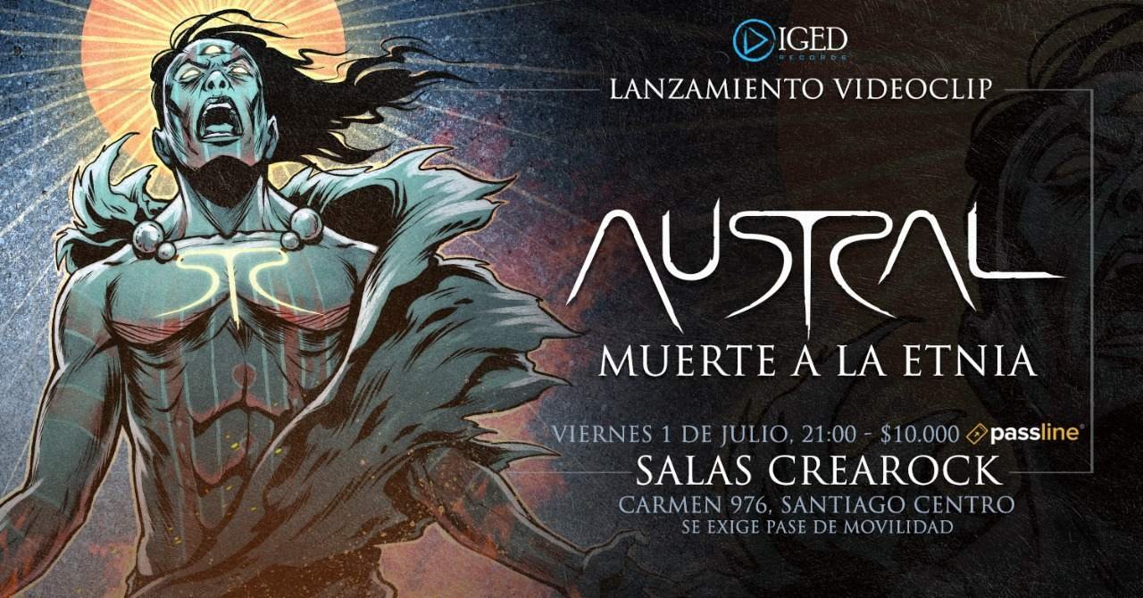 La banda chilena de metal étnico AUSTRAL estrena el lanzamiento de su nuevo single y videoclip Muerte a la Etnia, que nos introduce en el comienzo de una nueva historia relacionada con el espíritu y despertar de un guerrero, luego de haber sufrido el devastador exterminio en su tribu.