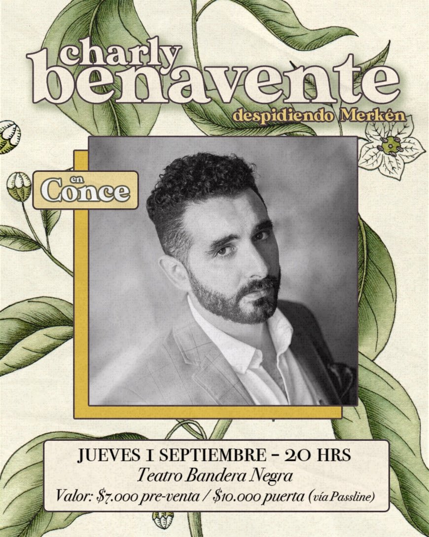 El cantautor araucano Charly Benavente volverá a escenarios penquistas para despedir su disco “Merkén”. En la ocasión, el músico repasará su segundo álbum completo, además de tocar algunos temas de su trabajo debut, “San Osvaldo” en un show a banda completa y con nuevos arreglos.