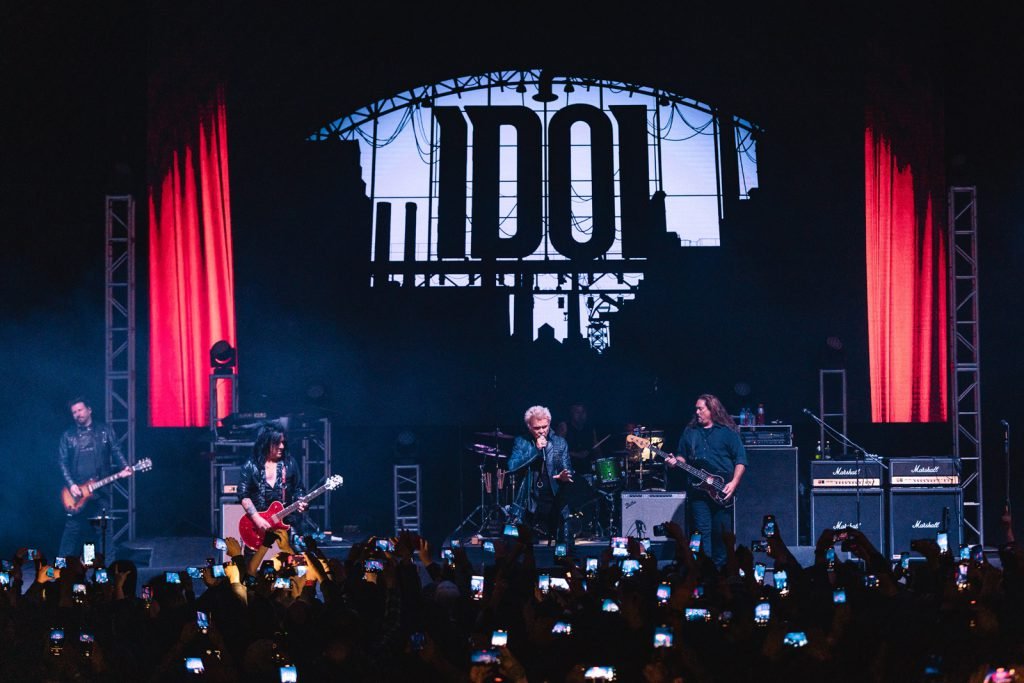 La primera descarga fue “Dancing With Myself”, canción de su época con “Generation X”. El gran Steve Stevens hace gala de su talento haciendo algunos malabares con su guitarra mientras toca. En segundo término fue el turno de “Cradle of Love” y ya el público estaba a los pies de Idol, coreando a todo pulmón la canción. La próxima entrega sería “Flesh for Fantasy” y el sonido ochentero inundó la atmósfera que ya a estas alturas era de una verdadera fiesta: la puesta en escena del blondo cantante y Stevens fue impecable. Acto seguido interpretaron la recientemente lanzada “Cage”, single de su nuevo EP llamado de igual manera, próximo a salir este 23 de septiembre.