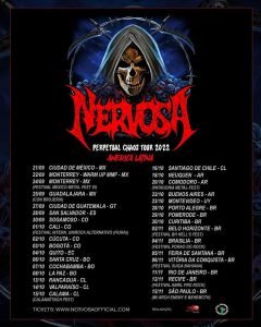 La gira dio comienzo el 21 de septiembre en México y se extenderá hasta el 13 de noviembre en Brasil. ¡Casi dos meses de tour desenfrenado por la región convierten a Nervosa en una de las bandas más trabajadoras, ambiciosas y consistentes de la actualidad!