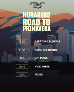 Primavera Sound aterrizará en territorio chileno en noviembre con las señas de identidad que lo han convertido en una referencia a nivel mundial: se celebre donde se celebre, es una ventana a la que hay que asomarse para conocer qué está pasando en la música contemporánea. Pero la previa la celebramos el 16 de octubre con Road to Primavera que trae en un mismo show a Pixies, Jack White, Cat Power y Niños del Cerro en Movistar arena. La mejor avanzada imaginable para el aterrizaje definitivo de Primavera Sound en Latinoamérica: nuevos sonidos, nuevas sinergias, para que la comunidad Primavera siga creciendo alrededor del mundo.