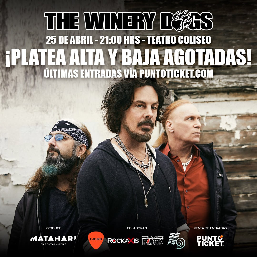 The Winery Dogs 202III World Tour – Latin America comenzará con el show que darán los músicos en Chile, el martes 25 de abril en el Teatro Coliseo, para luego continuar por otros países del continente.