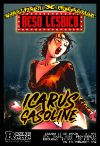 El próximo sábado 18 de marzo, a partir de las 21 hrs., se llevará a cabo la esperada vuelta a los escenarios chilenos y celebración de los 10 años de la banda Beso Lésbico, la que estará acompañada por Icarus Gasoline, en Bar de René, ubicado en Santa Isabel 0369, Providencia.