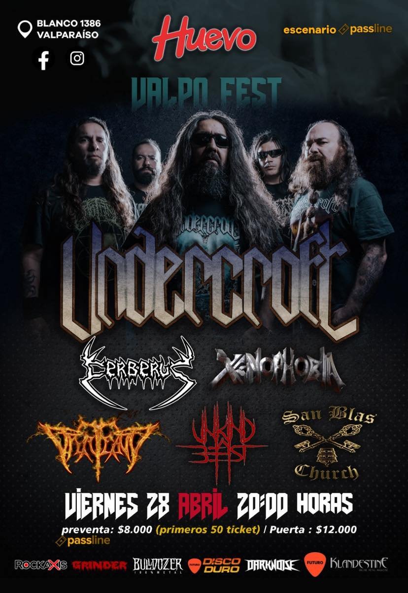 La aplanadora de death metal Undercroft sigue intratable, y regresa a la Quinta Región después de 26 años. La banda nacional conformada por Tito Melin en las voces, Felipe Jiménez en la batería, Sergio Aravena y Claudio “Tomate” Illanes en las guitarras y Marco Medina en el bajo, repasaran en vivo grandes clásicos de los demos; To The Final Battle, (1993), Demons Awake, Revenge Is Near (1993), y los discos en estudio: Twisted Souls (1995) y Bonebreaker (1997).