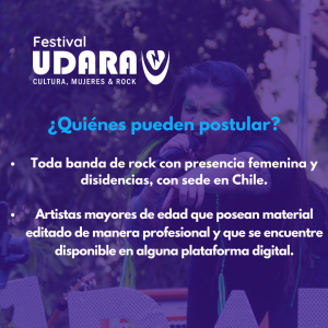 Entre el 15 y el 25 de mayo estará abierta la postulación para aquellas bandas de rock que quieran postular a ser parte de la parrilla musical del tradicional certamen que se realiza año a año en la Región de Valparaíso y es organizado por el Colectivo Udara, Cultura, Mujeres y Rock.