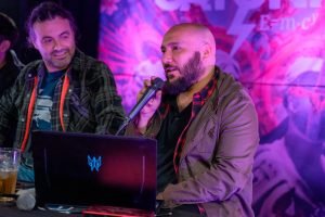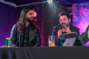 La “Listening party” fue guiada y moderada por Mandy, el Dr. Rock and Roll, quien acompañó en la mesa instalada en el escenario a Carlos, Marcelo y Joaquín, la banda en pleno. Así, comenzamos a escuchar “E=m*cy”, producido por Luciano Farelli (Arde La Sangre, Parteplaneta) y con un sonido demoledor y canciones llenas de detalles, cuya portada, diseñada por Leandro Machado en Brasil, le hace honor a este universo lleno de texturas.