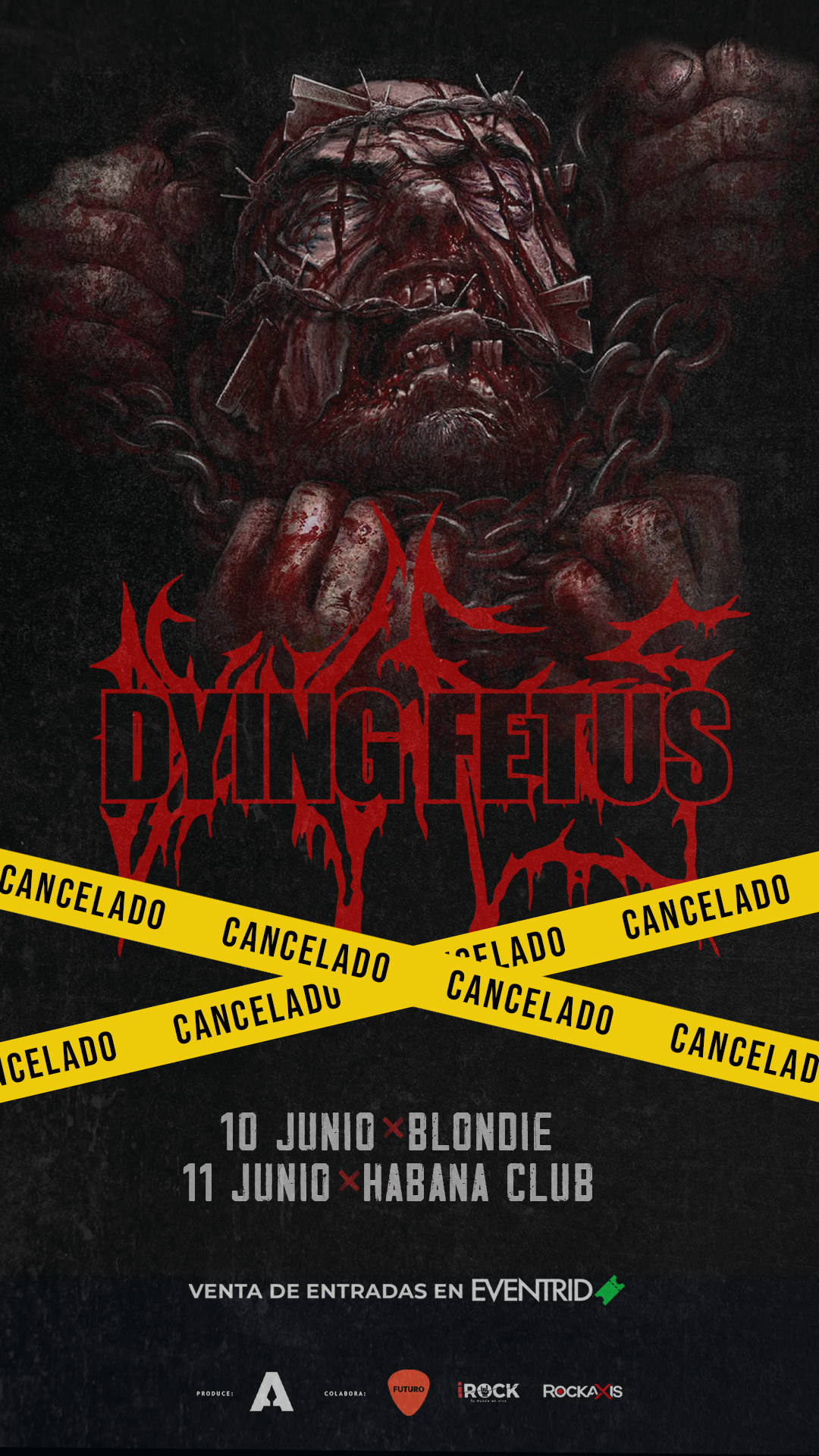 Para los que deseen devolución de tickets online deben solicitarlo a devoluciones@eventrid.cl, con el asunto “Devolución Dying Fetus”, adjuntando la entrada y datos bancarios del comprador.
