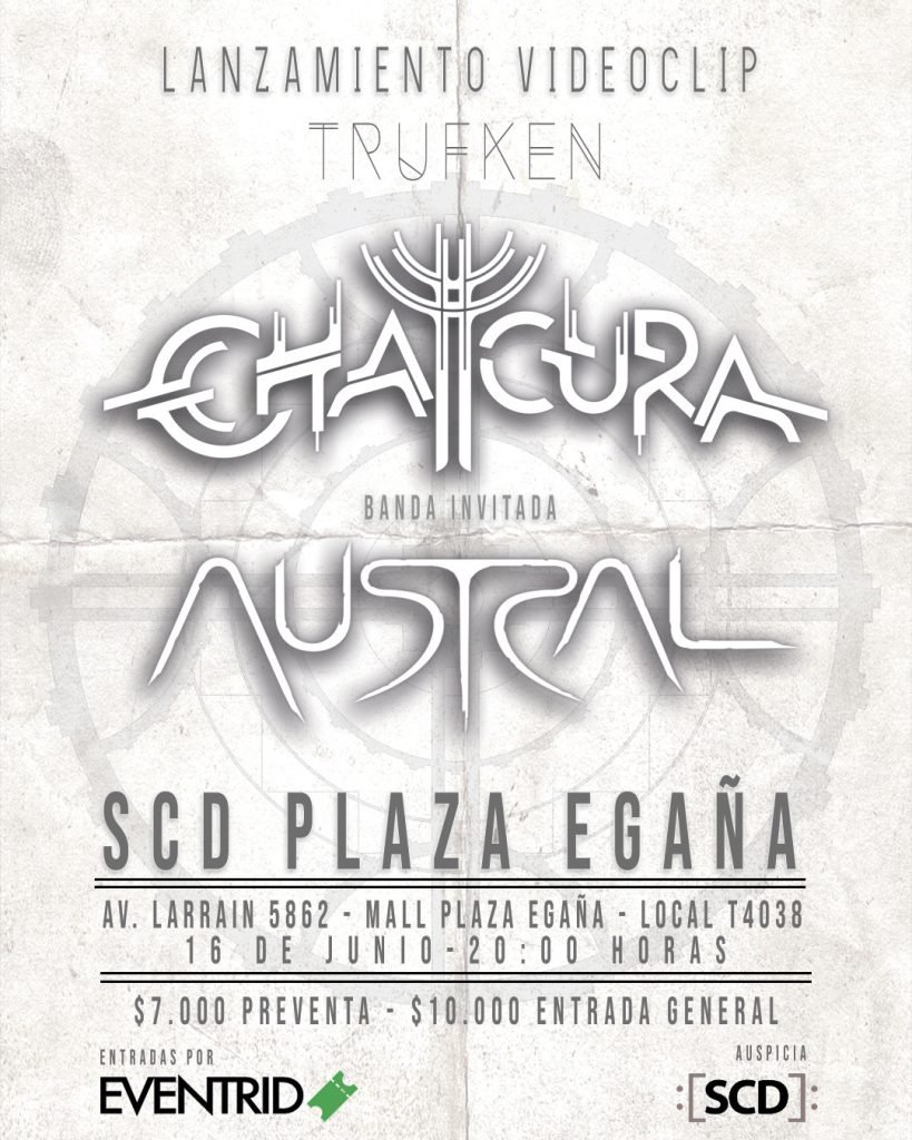 En primer lugar, la bullada banda de rock/metal progresivo Chaicura, quienes presentarán de manera oficial el videoclip de “Trufken“, segundo track de su aclamado disco “Capítulo I – Inche”, el cual viene de ser lanzado exitosamente en una repleta Sala RBX, con notables comentarios a su haber por la crítica especializada. Chaicura es, sin lugar a dudas, una de las bandas con más potencia en el circuito local, con una propuesta única en todo sentido de la palabra.