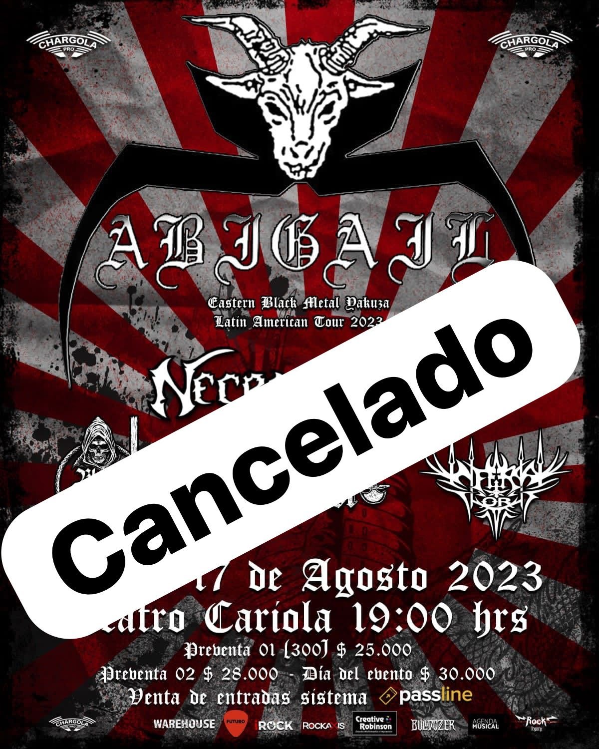 A través de un comunicado en las redes sociales oficiales de la banda y, por motivos personales de fuerza mayor que se encuentra viviendo Youhei Ono, baterista de la agrupación, Abigail ha decidido suspender su gira por Latinoamérica, la que incluía a nuestro país. El comunicado es el siguiente: