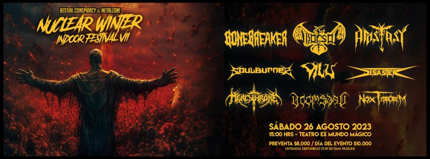 Los 35 años de Bestial Conspiracy junto a MetalZone, nos presentan un cartel 100% de puro metal nacional, en una nueva versión de Nuclear Winter Indoor Fest VII.