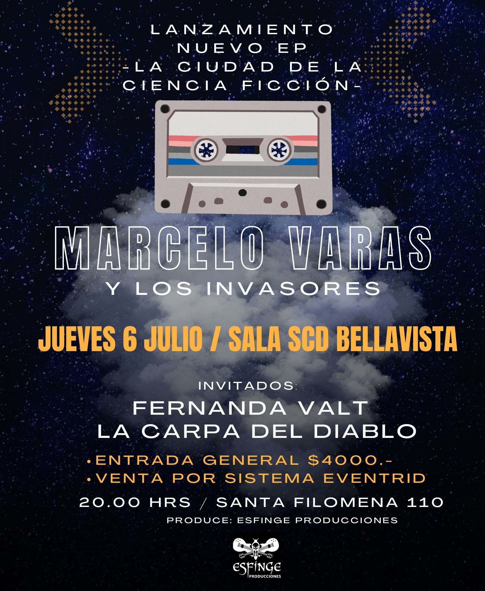 El próximo jueves 6 de julio a partir de las 20 horas, el músico nacional Marcelo Varas lanzará su nuevo EP “La Ciudad de la Ciencia Ficción” en la Sala SCD de Barrio Bellavista, ubicada en Santa Filomena 110, Recoleta.