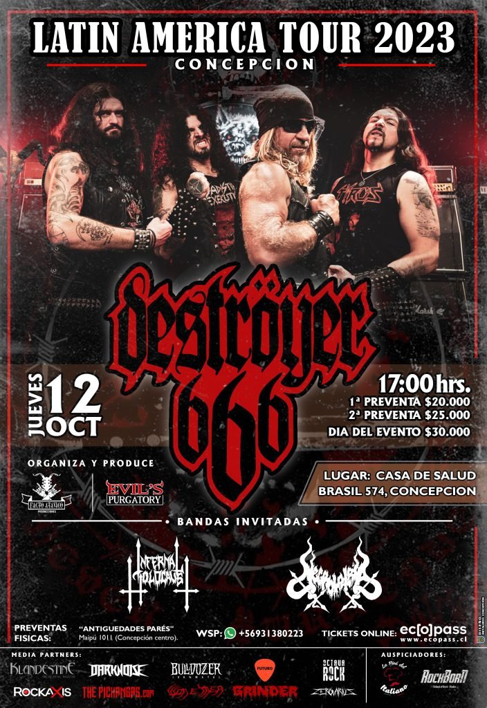 La banda australiana de black thrash metal Deströyer 666 formada en 1994 se presentará por primera vez en Concepción el jueves 12 de octubre en Casa de Salud Brasil # 574. Todo esto en el marco de su gira “Latín América Never Surrender Tour 2023“, y celebrando 29 años de carrera como banda.