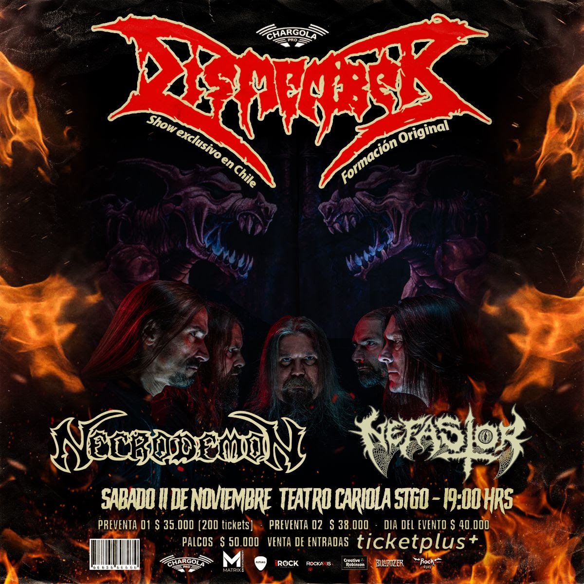 En ambas fechas se contará con el regreso a los escenarios de la clásica banda nacional Necrodemon como invitados especiales. Además, en Santiago se sumara toda la brutalidad de Nefastor y, en Valparaíso, Defragment que traerá lo mejor de su metal extremo a la apertura de esta jornada cargada de death metal.