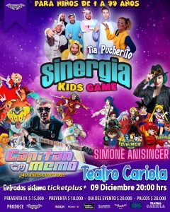 En una velada dedicada no solo a los niños, sino que también a aquellos adultos que, nostálgicos, desean recordar esos años en los que veíamos nuestras series animadas favoritas a través de un televisor, es que el próximo 9 de diciembre en el Teatro Cariola reviviremos la banda sonora de nuestra infancia junto a Sinergia Kids, Capitán Memo y Simone Anisinger.