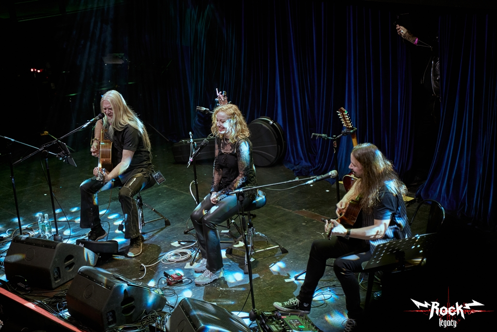 Tras una breve espera, vimos entrar al gran Marko Hietala con su bajo Warwick electroacústico, quien saludó a la audiencia y presentó a su compañero, el guitarrista Tuomas Wäinölä. El primer protagonista fue “Stones”, tema del disco “Pyre of the Black Heart”, editado el 2020 por Marko. La canción comenzó con una bellísima intro en guitarra de 12 cuerdas, un bajo que entró de a poco y un canto expresivo y profundo. El público acompañó y aplaudió fuerte al final. Marko pidió unos ajustes al retorno y seguimos. Pregunta si alguien entiende el idioma finés y tocan con un comienzo misterioso y potente. Luego de aquello, un grito eufórico: “Tonight there’s gonna be a jailbreak in this town!” y ejecutan la clásica “Jailbreak” de Thin Lizzy. Tremendo. Gran momento, donde vemos a Tuomas lucirse en la guitarra acústica, realizando el solo tal como si fuera una guitarra eléctrica, con rapidez y destreza, lo mismo que en el siguiente clásico que tocan: “Holy Diver” del inmortal Dio, en una versión demoledora, a pesar de la adaptación.