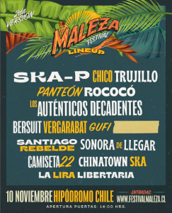El evento ya contaba con la presencia de la banda SKA-P que anunció que su despedida de los escenarios será en Maleza, como también la actuación de los mexicanos Panteón Rococó, un grupo importante de la escena mexicana del ska. También están confirmados los ex Guachupé, Camiseta 22, los argentinos Bersuit Vergarabat, conocidos por hits como “Se viene”, “Tomo” y “Señor Cobranza” , y sus coterráneos Los Auténticos Decadentes, grupo muy querido en Chile, autores de éxitos como “Loco”, “Corazón” o “La guitarra”.