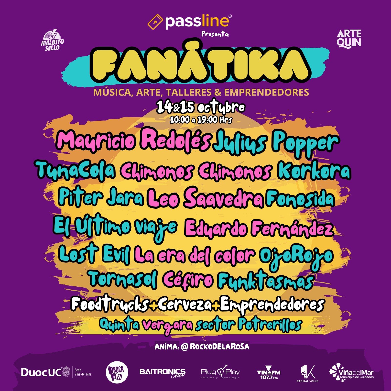 Los días 14 y 15 de octubre en el Parque Potrerillos de la Quinta Vergara se llevará a cabo la primera versión del Fanátika Fest, evento producido por Maldito Sello y el Museo Artequín de Viña del Mar. Serán dos días de música en vivo con diferentes actividades pensadas para toda la familia, como una feria de emprendedores, diversa oferta gastronómica y una exposición de autos clásicos Volkswagen, entre otras.