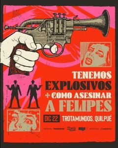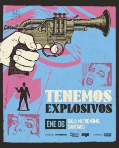 Tenemos Explosivos, una de las bandas más importantes de la música chilena contemporánea, anuncia fechas por Chile para los próximos meses. El quinteto se estará presentando el 22 de diciembre en Trotamundos de Quilpué, el 5 de enero en la Bodeguita de Nicanor en Concepción y el 6 de enero en Sala Metrónomo de Santiago. En el caso de las fechas en Quilpué y Concepción, estarán acompañados de Como Asesinar A Felipes.