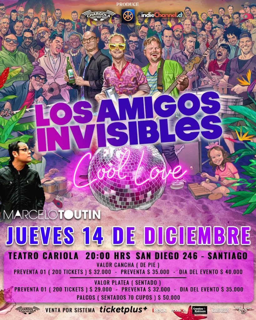 Con 12 discos de estudio bajo su alero, dos premios Grammy y múltiples nominaciones, regresa a Chile una banda que ya es de la casa: hablamos de Los Amigos Invisibles, quienes llegarán el próximo jueves 14 de diciembre al Teatro Cariola para presentar lo mejor de su repertorio, dando énfasis a su último álbum que le da nombre a la gira “Cool Love” (2022).
