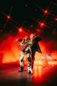 Una sección de bajo y batería sigue enardeciendo a la gente, mientras vuelven al escenario principal Thomas y Damiano, para dar un golpe certero con “I Wanna Be Your Slave” y la fiesta segura que alegró a la multitud. “Mammamia” fue dedicada a los italianos presentes, mientras que “Humble”, cover de Kendrick Lamar, cumplió con mantener el show en pie. “In Nome del Padre” es tan intensa como pueden ser los italianos, con Damiano abrazando y cantando con el afortunado público de las primeras filas. “Bla Bla Bla” comenzó misteriosa y subió hasta casi explotar, para dar el paso a la última canción de este set: “Kool Kids“, en donde subieron al escenario fanáticos que vivieron el sueño de tocar a sus ídolos y bailar junto a ellos, en un final en éxtasis que, obviamente, dejó a todos rogando por más.
