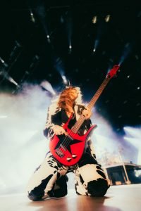 La fiesta continuó con el superhit “Beggin'”, la canción más veces tocada en vivo por la banda, muy coreada y disfrutada, mientras la carismática Victoria bajaba hacia la barricada para compartir con el público mientras tocaba. “The Driver” es uno de los nuevos temas, que viene en la versión deluxe de “RUSH!”, próxima a editarse, y luego de aquel, se anunció el tema favorito de Thomas: “For Your Love”, que tiene una segunda mitad muy intensa, con Damiano tomando un foco gigante para jugar con la banda, mientras Thomas lanzaba sus notas como un hechizo y Victoria con Ethan llevaban una fabulosa sección rítmica, con la bajista nuevamente bajando hacia el calor del público. “Gasoline” desplegó fuego hasta en el micrófono, haciendo justicia al show en llamas que estamos viendo, finalizando así la primera mitad en alto.