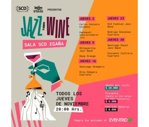 “Este ciclo es una oportunidad inmejorable para disfrutar del jazz en su máxima expresión, ya que no sólo contaremos con algunos de los más destacados músicos y agrupaciones de nuestra escena, sino que además tendremos la oportunidad de disfrutarlos en uno de los mejores lugares del circuito, como es la Sala SCD Egaña, lo que nos dará la opción de apreciar de manera óptima su técnica y talento. Y si a eso sumamos que se trata de jornadas dobles acompañadas de una copa de vino, definitivamente son citas que los amantes del jazz no se pueden perder. Como SCD, y junto al Club de Jazz, estamos felices de llevar esta opción al público”, señaló el primer vicepresidente de SCD, René Calderón.