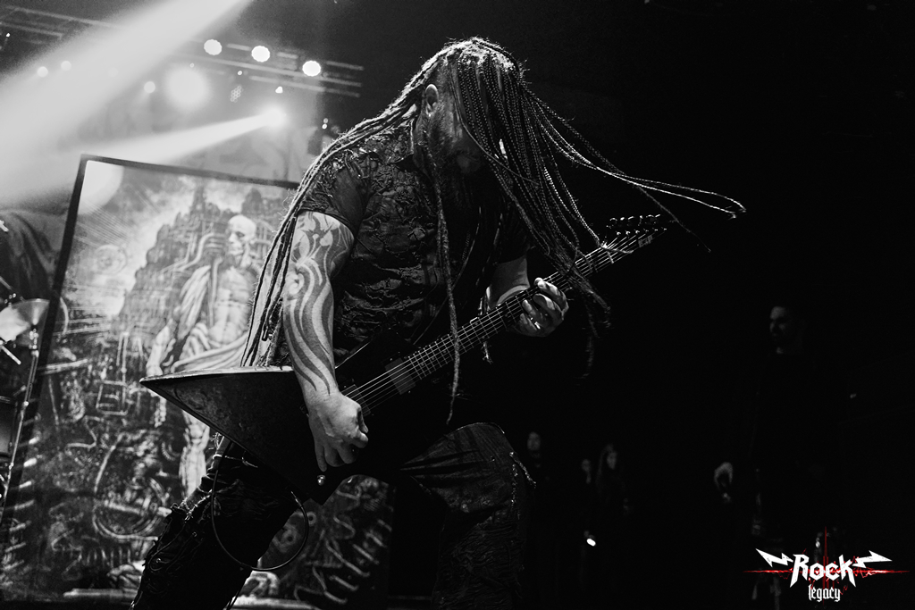 “Neuromancer” es del último disco de la banda, “Modern Primitive”, arrastrado y pesado, y con gran respuesta de la audiencia. “Hierophant” sonó intensa y colosal, demostrando que los temas del último disco crecen mucho en vivo, mientras Spiros provoca y sostiene gran parte del show. Cuando el vocalista pidió mosh, de inmediato se cumplió. El maestro Christos Antoniou mantuvo su posición, uniéndose al cabeceo de cuando en cuando, manteniendo una sólida y brutal pulcritud en su guitarra. Por el lado de la otra guitarra, Dinos Prassas sostenía su propio ritual, con una enorme ejecución y un derroche de energía total. Kerim Lechner, por su parte, no dio respiro en su batería infernal. La brutalidad y el despliegue de energía parecían infinitos en estos cuatro guerreros del metal.