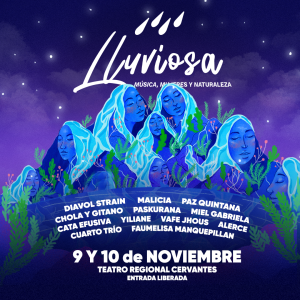 El Festival Lluviosa realizado por la Asamblea Autoconvocada de Mujeres Trabajadoras de la Música y llevará a cabo su tercera versión en el mítico Teatro Regional Cervantes de Valdivia. Este año Lluviosa cuenta con 12 artistas de diversos estilos, que se presentarán en vivo y con 8 artistas que serán parte del evento a través de sus videoclips.