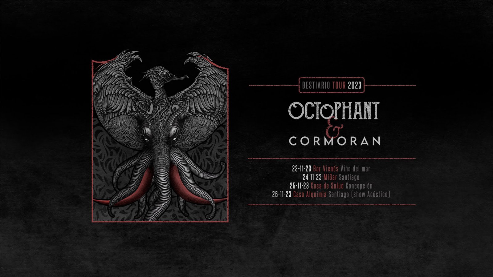 Durante el próximo mes de noviembre, Octophant y Cormoran (Uruguay) se unen en el Bestiario Tour, una experiencia musical que recorrerá Viña del Mar, Santiago y Concepción, en donde ambas bandas ofrecerán una variedad de sonoridades únicas y emociones diversas.