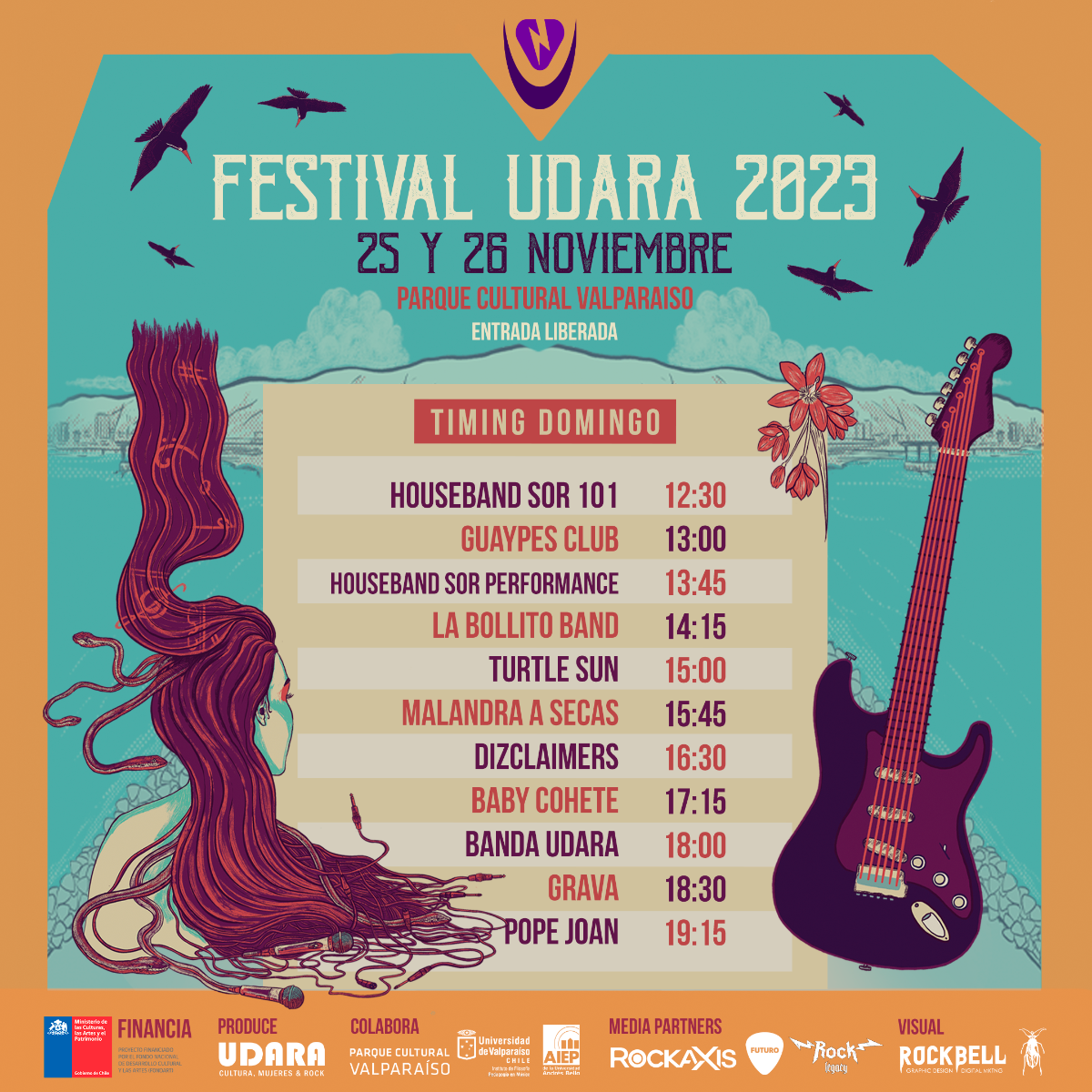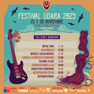 Este 25 y 26 de noviembre viviremos un nuevo encuentro Udara: Cultura, Mujeres y Rock en el Parque Cultural de Valparaíso, y con el objetivo de que quienes quieran asistir se programen con tiempo, la producción ya entregó los horarios de todas sus actividades y talleres junto con los timings de las 18 bandas con presencia femenina que se presentarán entre los dos días de certamen.