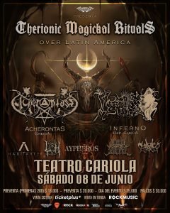 En una gira Latinoamericana que contemplará a países como Colombia, Bolivia y otros próximos a confirmar, los griegos de AXEPONTAΣ y la agrupación checa Inferno llegarán a nuestro país en el marco de la gira “Therionic Magickal Rituals over Latin America 2024” el próximo sábado 08 de junio en el Teatro Cariola.