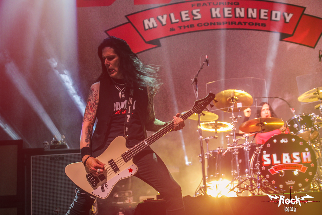 Cuando hablamos de Myles Kennedy and the Conspirators, en particular del cantante, hablamos de compañerismo en ruta por más de 14 años, tiempo ostensiblemente superior a la primera estancia de Slash en Guns n’ Roses (1985-1996) y que surgió luego de que el también vocalista de Alter Bridge fuera uno de los varios invitados a formar parte del primer álbum en solitario del guitarrista por allá por el año 2010. En él, aparece “Back from Cali” -un verdadero clásico de la discografía del guitar hero– que fue coreado a voz en cuello por un público que presenció un show en donde las referencias a Guns N’ Roses fueron mínimas. Y tampoco es como que alguien las haya estado pidiendo. Salvo por un par de canciones, no hubo mayores alusiones a la banda encabezada por Axl Rose. La solidez del tándem Kennedy-Slash es tal que fue el bajista Todd Kerns quien se hizo del micrófono en esas ocasiones así como en el semi-cover de “Always on the Run” (original de Lenny Kravitz pero co-escrita por Slash). Todo el resto del repertorio estuvo basado en el trabajo que Slash ha venido cosechando en solitario (ya sea con el noventero grupo Slash’s Snakepit, solo o con Myles Kennedy y compañía). En esa misma línea, ni de asomo hubo interpretaciones del catálogo de Velvet Revolver, a diferencia de presentaciones anteriores que le vimos en Chile.