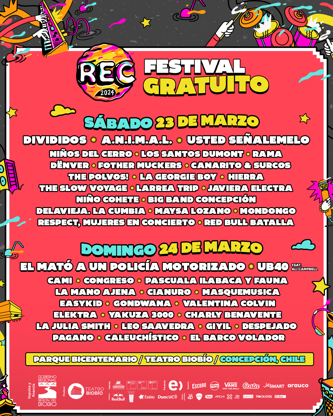 El REC 2024 es impulsado y financiado por el Gobierno Regional del Biobío y producido por el Teatro Biobío. En esta edición, la programación para ambos días es la siguiente: