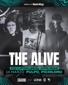 Por su parte, The Alive regresa a Lollapalooza Chile y tendrá por primera vez su show en solitario, el que además será el único fuera de la región metropolitana: The Alive se presentará de manera gratuita en Pichilemu, el 14 de marzo en Pulpo, marcando un hito en esta edición de Lollapalooza Chile.