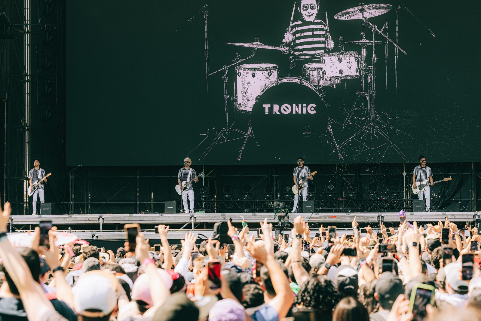 La marea de público iba entrando al recinto de Cerrillos cuando se escucha la intro que invitaba a correr para presenciar a una de las bandas más queridas por la generación sub 30, hablamos de los chilenos de Tronic que con su punk rock, hilarantes letras y energía desbordante tenía saltando a una gran cantidad de asistentes al ritmo de sus temas.