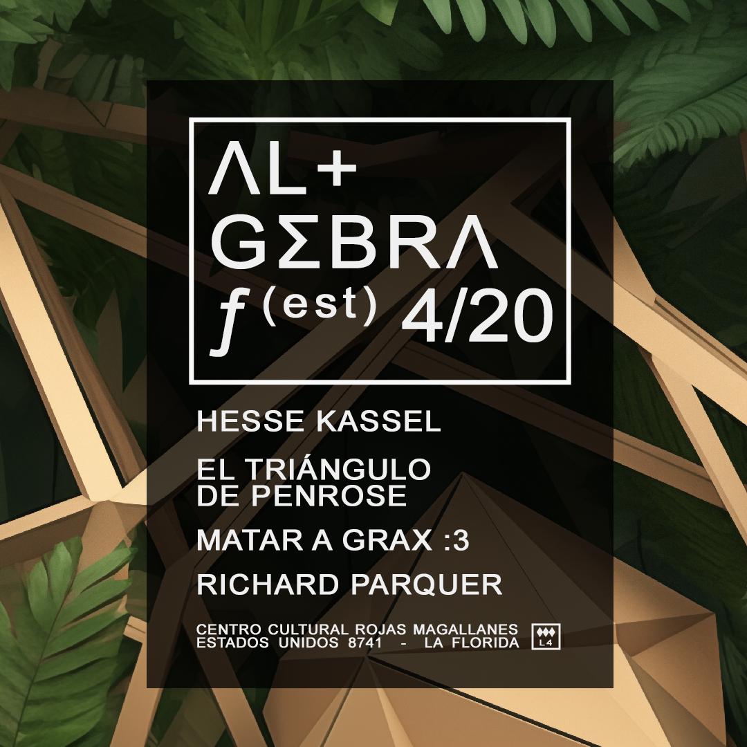 El próximo sábado 20 de abril a las 17:00 horas en el Centro Cultural Rojas Magallanes, se llevará a cabo el Álgebra Fest, evento musical para todas las edades que contará con las presentaciones en vivo de exponentes del math-rock chileno emergente como El Triángulo de Penrose, Matar a GraX, Richard Parquer y Hesse Kassel.