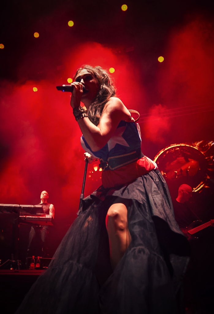 Within Temptation está ad portas de cumplir 30 años de carrera en un par de años, tiempo en el que han lanzado ocho álbumes de estudio y presentado un estilo sin igual al componer e interpretar canciones no solamente en el estudio sino que en vivo de igual manera. Y fue así que la vocalista y miembro fundador de la agrupación neerlandesa, Sharon den Adel, nos sorprendió apareciendo en escena con un corset modificado con la bandera chilena y que mantuvo por al menos tres canciones. Un lindo gesto hacia sus fanáticos locales.