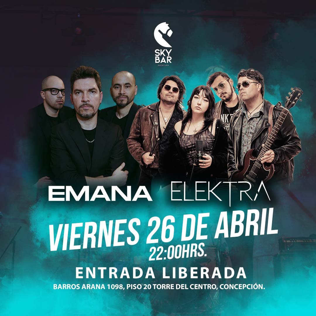 Ambas bandas oriundas de Concepción presentarán lo mejor de su repertorio. Por un lado Emana, banda de rock pop, se encuentra promocionando sus nuevos singles como “No Mires hacia atrás” y “Es Mejor Así”, single que está próximo a ser lanzado y que fue grabado en “Estudio La Madre” en Concepción, además de celebrar en septiembre 18 años de vida musical con un gran show en Teatro Biobío.