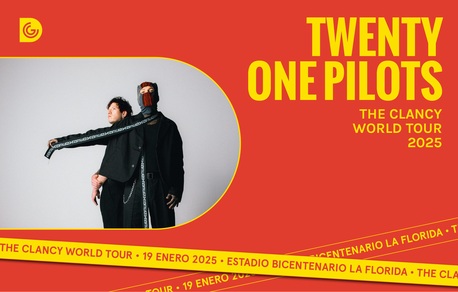 Para entradas y todos los detalles de la gira latinoamericana de Twenty One Pilots, The Clancy World Tour, visita www.twentyonepilots.com/tour.