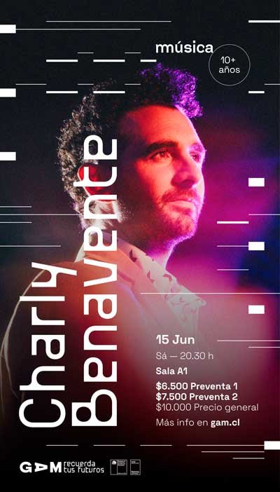 Charly Benavente presentará en vivo su tercer álbum con shows en las dos ciudades donde más se escucha su música: Santiago y Concepción. El 15 de junio ofrecerá un concierto en el Centro Cultural Gabriela Mistral (GAM) y el 5 de julio hará lo propio en el Teatro Biobío, respectivamente.