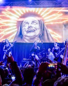 Suena “Forbidden Zone” y “Feel The Zeel” relatando la historia de estas monjas que comienzan a perder su santidad reconociendo las emociones mundanas pero muy humanas. En su particular estilo, Dogma demuestra un sonido heavy/hard rock en estas dos primeras canciones, para después con “My first Pick” comenzar con un sonido asociados al dark metal/rock que hoy es más reconocido por la banda Ghost. Es inevitable la comparación por la propuesta enigmática, ya que de estas monjas rockeras se sabe muy poco. Su información en redes sociales solo hace preguntas: ¿Una banda? ¿una religión? ¿un culto? Somos los que quieras que seamos.