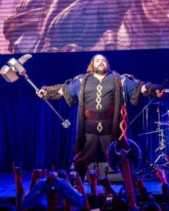 “Mine Mine Mine!” y “The King Under the Mountain” del increíble disco “WinterSaga” continúan con las canciones que aclaman la majestuosidad de estos enanos, como si nos preparáramos para la gran batalla. Es que no era para menos, esa batalla tiene nombre y se llama “The Battle of the Five Armies”, una de mis canciones favoritas porque habla de la batalla final que se da en el libro “The Hobbit” del aclamado autor J.R.R. Tolkien. La epicidad frente a los coros de esta canción hipnotizan al público, cantando todos al unísono, siendo uno de los momentos más altos de la jornada.