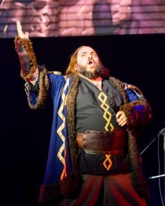 Suena “Army of Stone” y el público reacciona a la llegada de la banda al escenario, saliendo Francesco, su emblemático cantante vestido como un verdadero enano. Hay que destacar que todo en su vestuario, está asociado a los enanos de alta montaña que nos describía Tolkien en sus libros de la Tierra Media. Y es que no sólo el vestuario nos transportaba a esta tierra de fantasía, sino que también la actitud de toda la banda: estábamos en una verdadera fiesta enana. Comienza a sonar “Fellows of the Hammer”, con el particular vozarrón grave que imaginamos que tienen los enanos cantando en coro. La audiencia salta con cada acorde y golpe dado por el martillo en el yunque que la batería marca durante toda la canción.