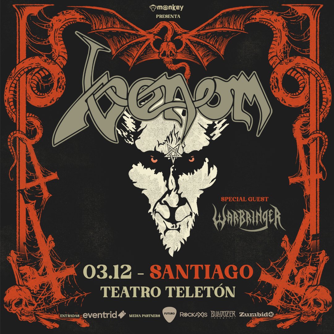 Venom, la banda británica formada en Newcastle, Inglaterra en 1979, ha anunciado su nueva gira latinoamericana donde nuestro país figura como una de sus paradas, fijando su show para el próximo 3 de diciembre de 2024 en Teatro Teletón.